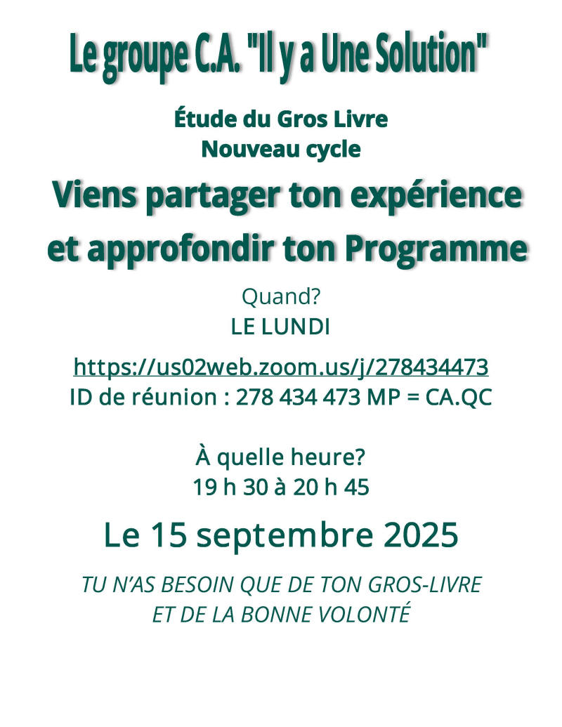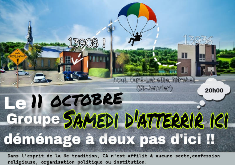 Vous avez un évènement pour votre groupe. N’hésitez pas à nous faire parvenir votre dépliant ou simplement un texte. Nous l’afficherons ici pour vous.